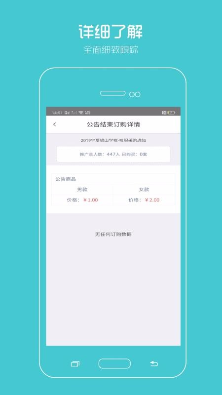 4、统计了学校的采购数量,可以查看校服订购的类型、价格和数量;