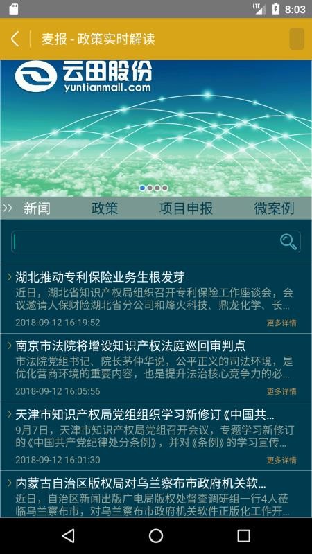 2、展示产权政策、项目申报和案例的详情内容,能够立即查看清晰的情况;