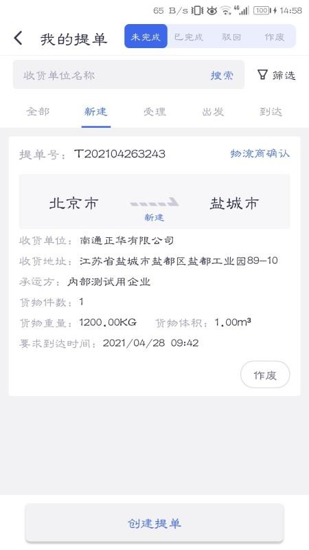 4、应用中有新建订单、新建提单和新建运单功能,满足用户各种需求;