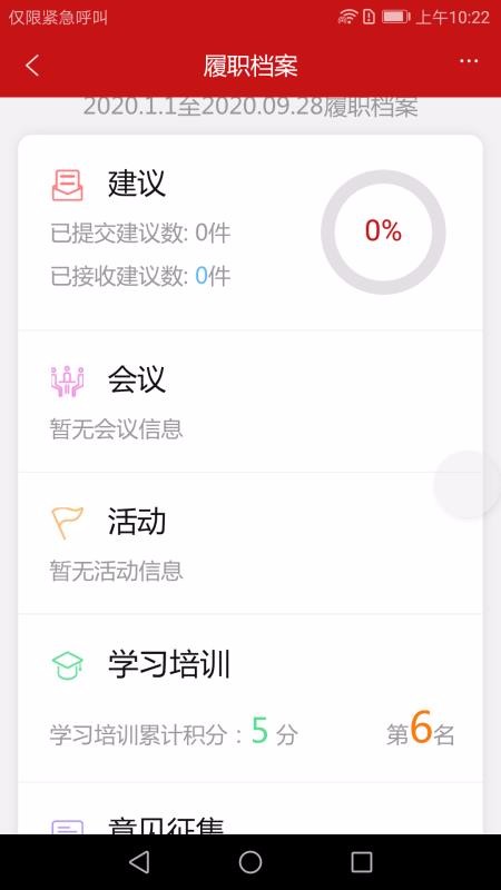 2、提供了履职档案,可以查看建议、会议、活动、学习培训、积分等数量;