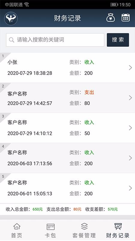 4、提供了财务记录,通过列表的形式展示了收支明细,并查看收支的对象;