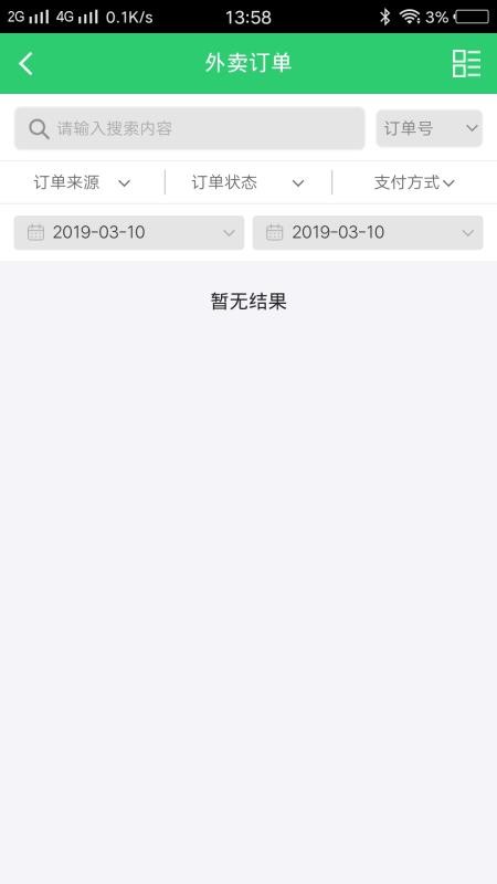 6、拥有订单筛选功能,用户可以根据订单来源、状态和支付方式来筛选订单;