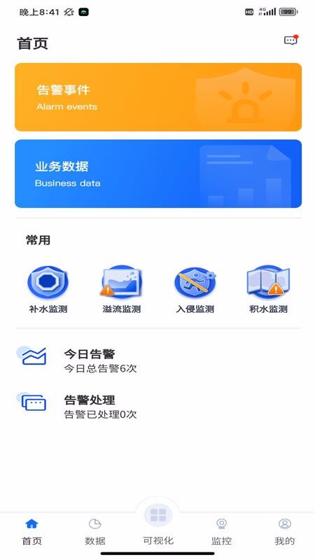 1、丰富的常用监测功能,首页设置了常用栏并提供积水、溢流和入侵等监测功能;