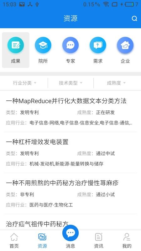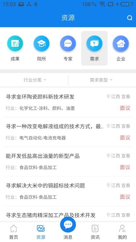 宜春科创app是一个综合性的项目合作平台,它拥有强大的互联网技术,采集了宜春市的各种技术创新项目,不管是正在研发的新型科技还是研发成功的科技成果都能在这里找到,用户可以通过直接输入关键词的方式,快速搜索到成果、院所、专家、需求、企业等类型的信息内容,能够轻松获取到各种优质的科研项目,只需要轻轻一点,就能迅速的和项目负责人洽谈,寻求合作机会,让寻找科研项目变得更加方便;除了各种项目资源以外,应用还提供了众多的科技资讯,直观的呈现在用户面前,可以自由查看,快速了解到科技行业的最新发展。