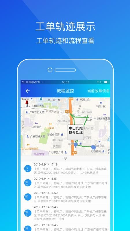5、工单轨迹,将工单的轨迹信息展现在应用上,可快速查看;