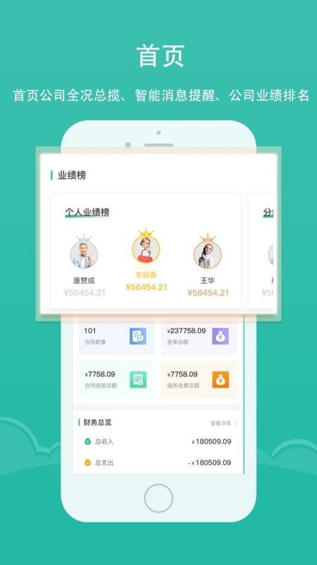 2、在首页中查看详细的业绩榜信息,了解各个员工的业绩详情和公司财务信息