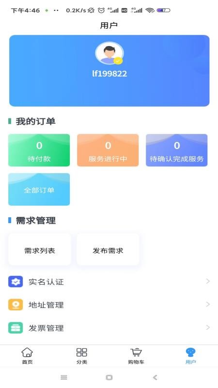 5、打开个人中心,查看自己的各个订单信息,在线管理自己的需求