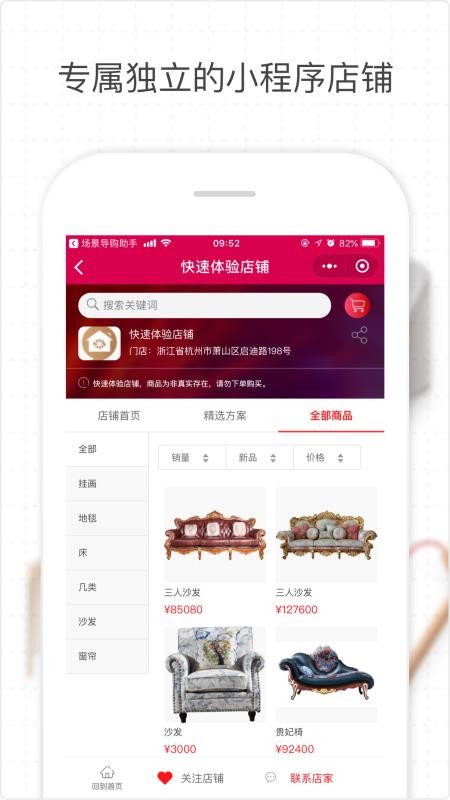 场景店助手app是一款为家居业商家打造的店铺管理软件,能够助力商家一体化管理线上和线下流量,提升客户转化率,从而达到增加收益的目的;在这里,每个用户都可以建立专属于自己的微信小程序店铺,可自定义装修风格,形成专有的店铺特色,能够快速的吸引客户,让客户在店铺中购买商品,实现增加商品销量的成果;同时,应用还拥有精准的客户轨迹,不管是客户的访问记录还是客户的详细信息都能在这里查看,用户可以快速了解到客户意向,轻松即可使用微信与客户交流,向客户推荐适合的产品,显著提升推广效率。
