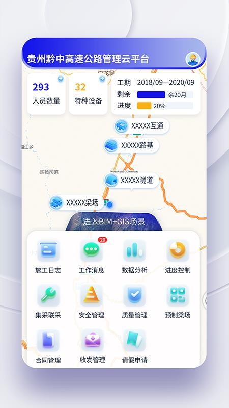 贵州黔中高速app是一款功能强大的施工管理软件,它主要面向高速公路项目,能够帮助用户解决公路项目的管理难题,显著提升各层人员的工作效率以及质量,从而达到缩短工期的目的;应用的功能众多,包括了人员管理、投资控制、进度控制、安全管理、质量管理、设计变更等等,充分适用于各种管理场景,用户可以自由的选择使用,在手机上就可以实现查看工作消息、管控施工进度、管理施工物资、管理合同等操作,能够轻松的完成工作任务,不需要亲自去到施工现场,节约了大量时间;如果有需要,就赶快下载体验一下吧。