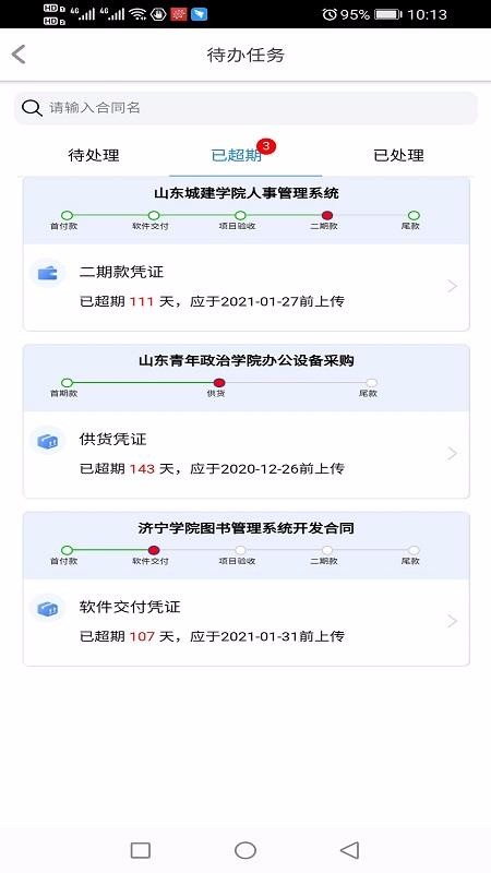 4、一目了然的待办任务进度,里面每一个任务都展示合同当前的进度状态;