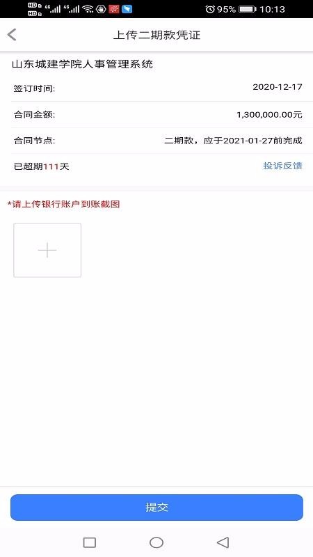 1、上传合同凭证,可以使用合同凭证的上传功能将相对应的凭证上传提交;