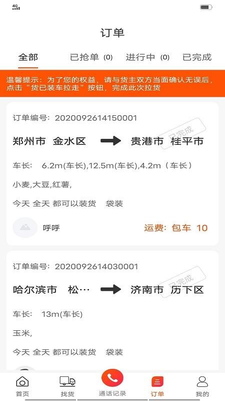 3、用户在软件中能够看到各个订单的详细起始地和货物信息,快速了解;