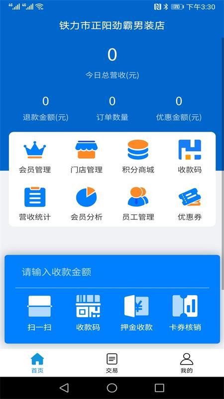 2、在首页中查看自己店铺每日的营收信息,在线管理门店各个会员