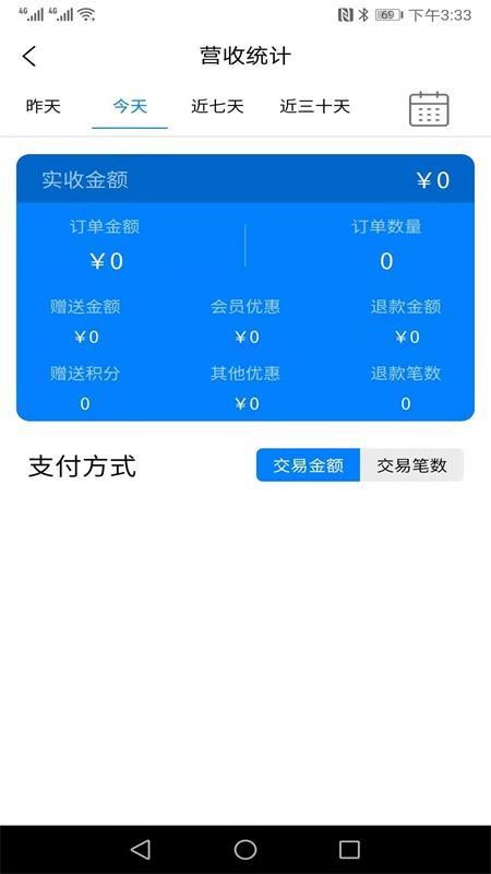 1、用户在软件中能够看到今日总营收、退款金额、订单数量和优惠金额信息;