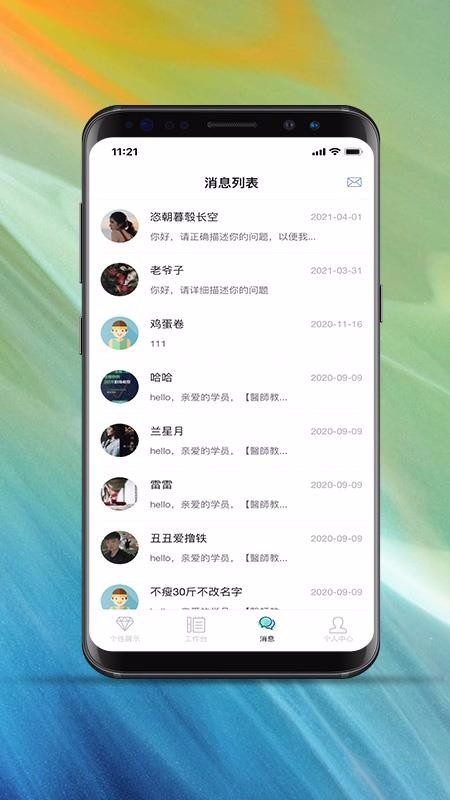 4、进入消息页面,可以查看消息列表,选择消息框进行聊天
