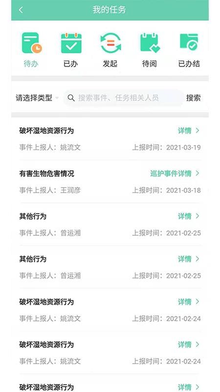 5、及时处理日常巡林的任务信息,实时查看待办理的任务详情,立即处理;