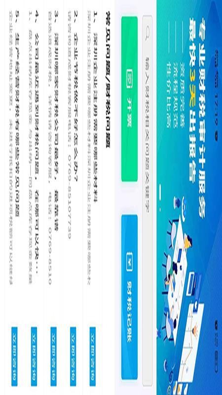 3、进入财税版块,更加便捷的进行开票,体验代理记账服务,在线咨询各种问题