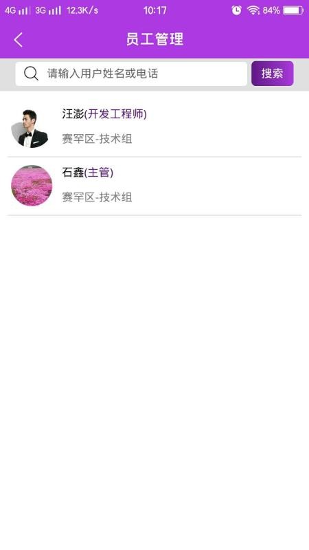 1、在这里,用户可以通过员工的姓名或电话来搜索员工信息,方便快捷;