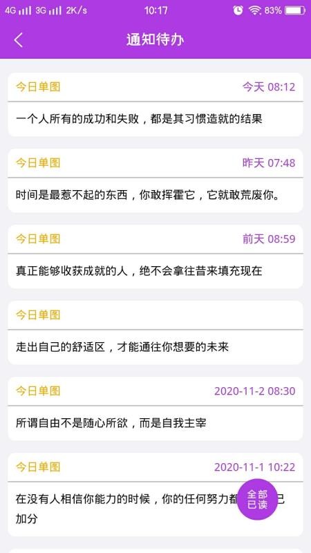 2、用户在软件中能够清晰看到各个通知待办的详细时间,并且可以一键已读;