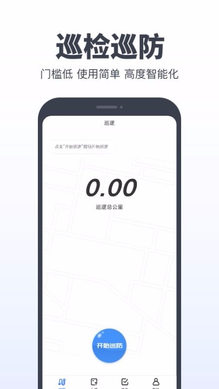 2、进入巡逻页面,就可以点击开始巡防,并查看统计的巡逻公里数