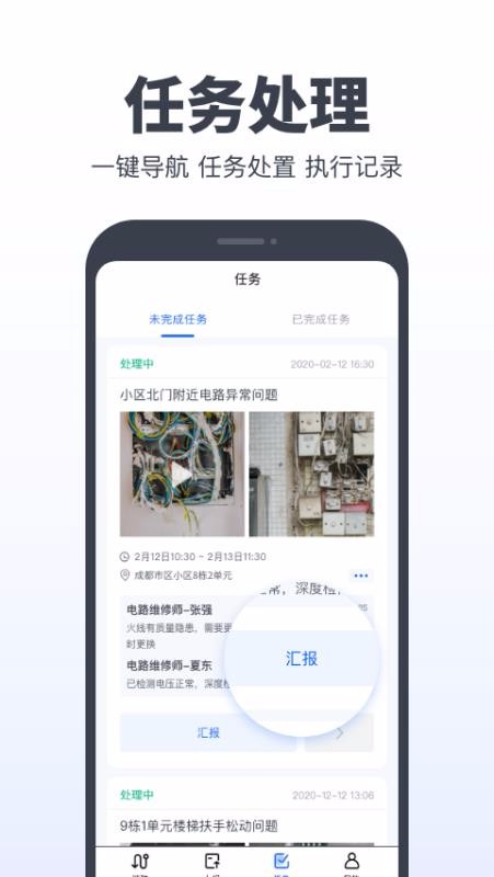 4、进入任务页面后,就可以选择任务进行处理和汇报,并查看已完成的任务信息
