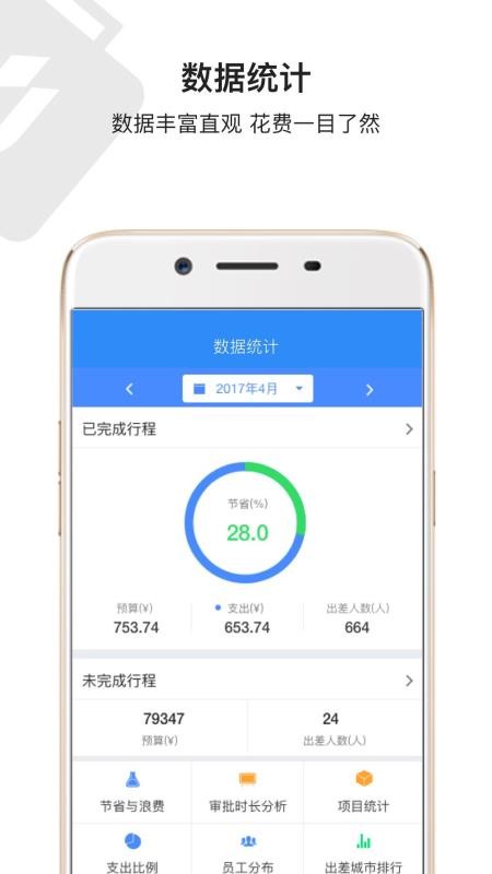 3、数据统计,统计了各种差旅数据,用户能迅速的浏览;