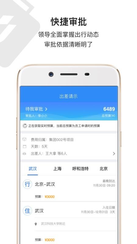 鲸力商旅app是一款基于大数据和云计算技术的差旅管理软件,它通过收集全球的交通以及酒店数据,集合企业的差旅规定和员工的差旅标准,为用户提供了差旅预算、差旅审批、差旅报销等实用功能,可自由的选择使用,简化差旅的各个流程,能够节省大量的时间;在这里,有出差安排的用户只需填写好出差的计划信息,系统就会生成相应的动态预算并提供给领导审批,审批通过后,就会对用户出差的费用支出情况进行全程监控,可以快速的进行查看,迅速了解到详细的支出信息,让报销工作变得更加的方便快捷;有需要的话就赶快下载体验吧。