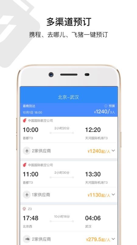 6、支持多渠道预订机票,包括了携程、去哪儿、飞猪等平台;