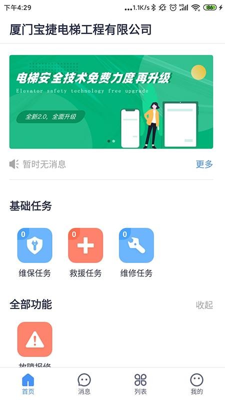 4、进入消息版块,查看各种类型的消息内容,了解电梯的最新动态信息