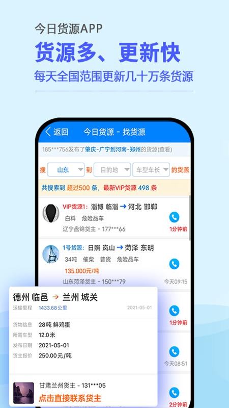 3、查看各个货源的详细货物信息,快速拨打货主电话进行沟通交流,轻松运货
