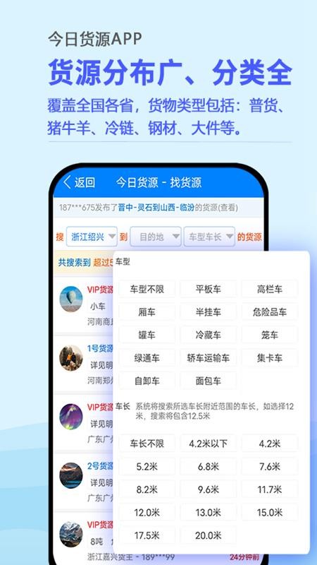 3、为用户清晰显示共搜索到的货源数量和VIP货源数量信息,方便用户了解;