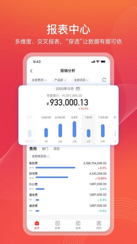6、数值化展现,统一报销入口,为用户提供导向式填报,一键报销更加方便;