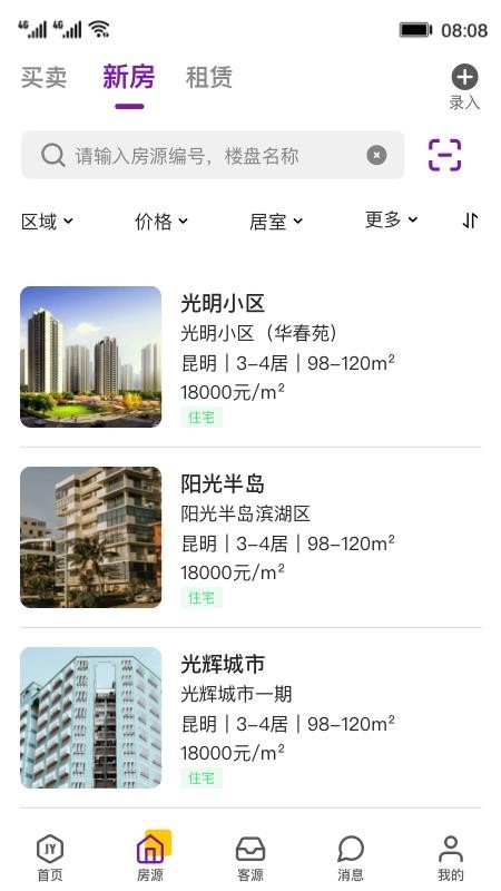 家韵助手app是一款为各个房产经纪人提供服务的软件,让房产经纪人能够更轻松的管理房源,提高自己的业绩;用户在软件中能够轻松找到更多的优质房源信息,从而能够向客户报备更多类型的房源,让客户可以轻松找到自己喜欢的房源进行购买,满足不同客户需求,并且用户能够更加便捷的带领自己的客户前往看房,让客户全方位的了解房源,提升客户的购房体验,同时用户能够在线管理自己的房源和客源,实时对房源和客户进行维护,为工作带来更多便利;快下载这款软件试试吧,更轻松的管理房源,维护客户关系。