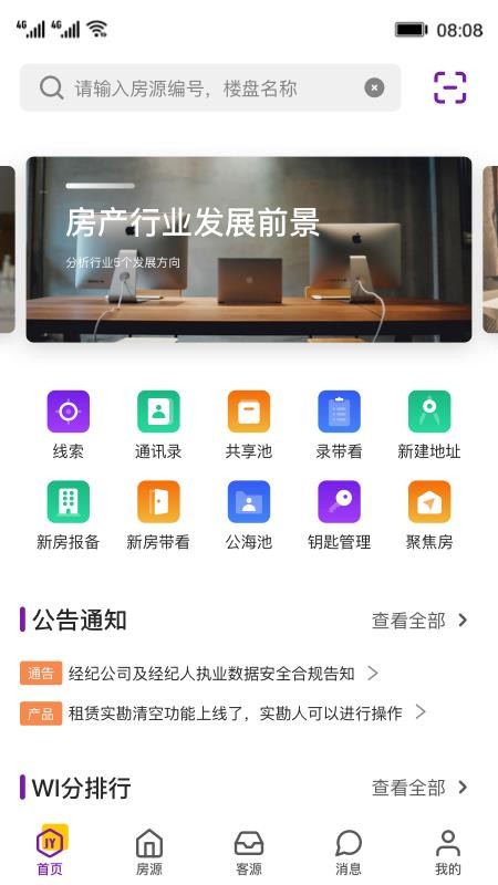 1、为用户提供线索版块,帮助用户快速获取更多的房源线索,及时跟进房源;
