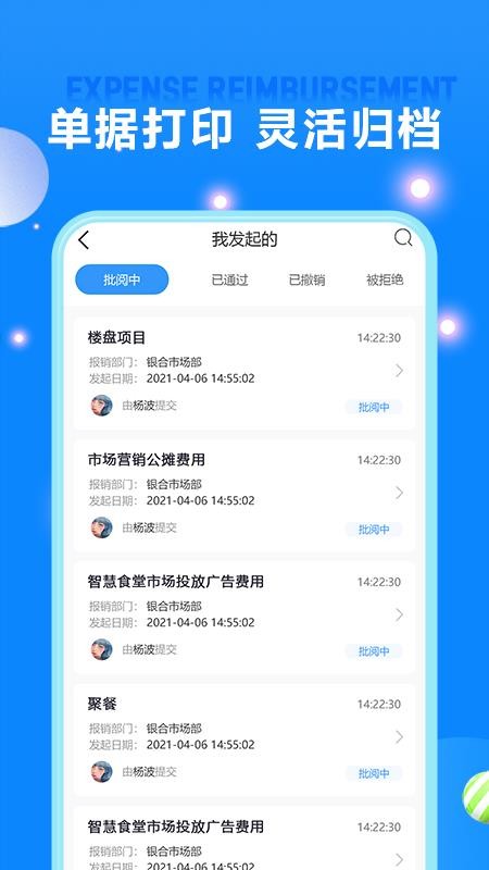 5、在这里用户可以清晰看到各种费用报销申请的批阅状态,快速了解;