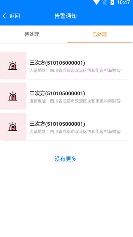 5、便捷的告警通知页面,该通知页面划分了待处理和已处理信息内容栏目;