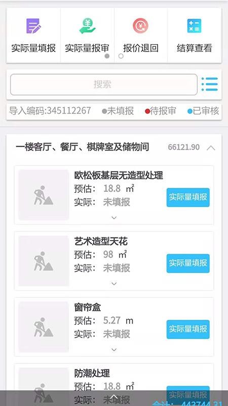6、拥有实际量填报和报审功能,并且用户能够一键退回各种报价;