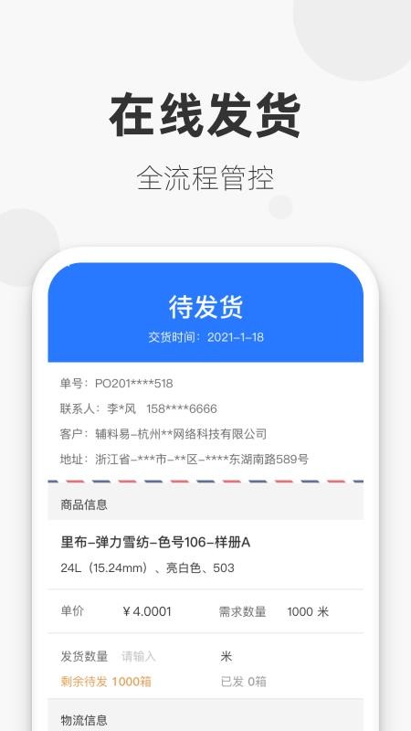 3、监管订单状态信息,在线立即查看全部订单发货和物流的详情;