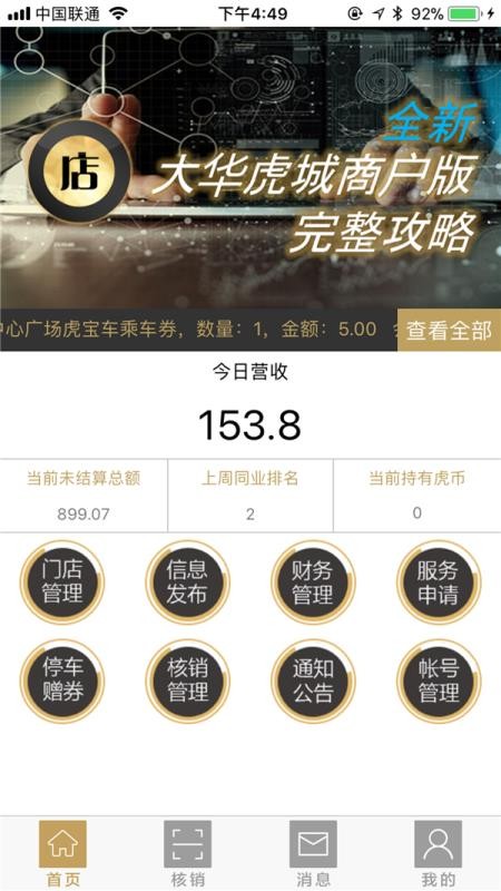 大华虎城商户版app是一款专为商户开发的掌上营销软件,它主要为用户提供便捷的店铺管理服务,每个人都能在这里快速的查看以及处理订单,显著提升了用户的工作效率;不仅如此,该应用还会实时的跟踪门店,门店每日的营收数据会直观的展现在用户面前,营业情况一目了然,如果营收不佳的话,就能采用发布团购活动、派发代金券、发布礼品等方式,将门店中的各种商品进行打折出售,能够吸引更多的客户购买,增加商品的销量,从而实现提升门店收益的目的;还等什么,有这方面需要的朋友赶快抓紧时间下载体验一下吧。