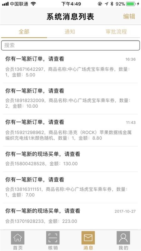 5、对用户核销订单的情况进行了记录,可随时查看到核销历史;