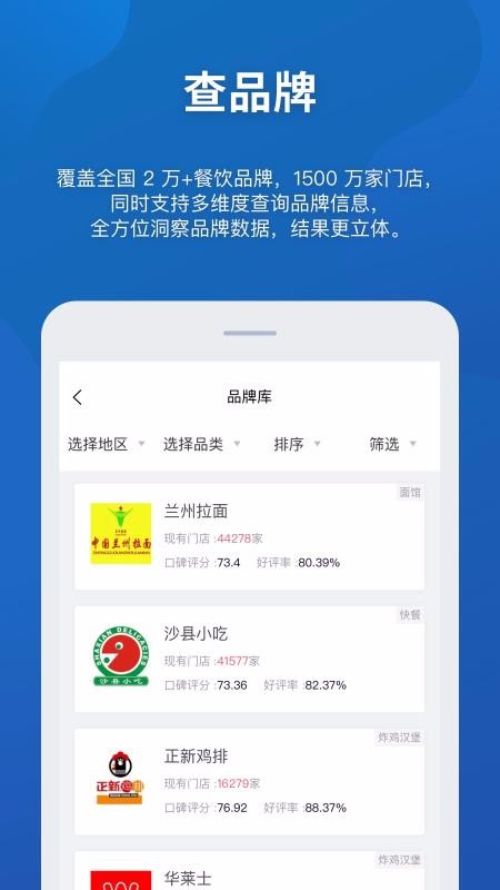 4、丰富的餐饮品牌,品牌库里面又为用户带来了全国两万多餐饮品牌项目内容;