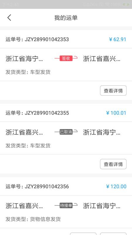 3、运单详情,记录了用户的每一个运单,可查看详情;