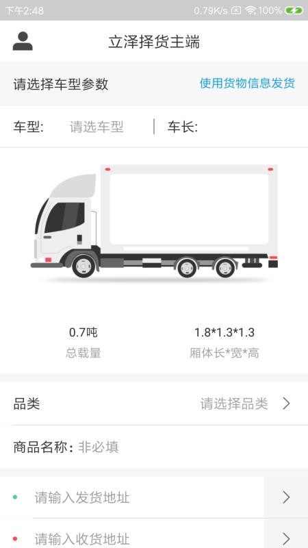 6、拥有车型发货以及货物信息发货两种类型,可自行选择;
