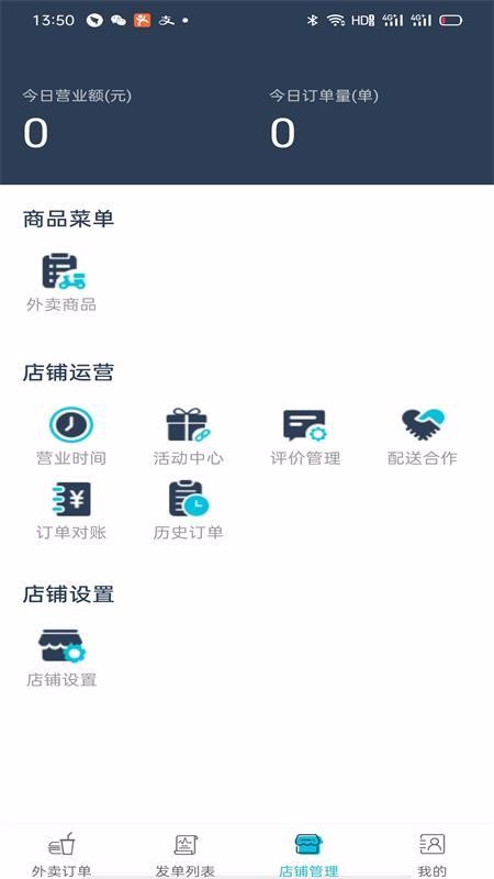 2、提供了多种管理功能,包括店铺设置、店铺运营、商品菜单等方面;