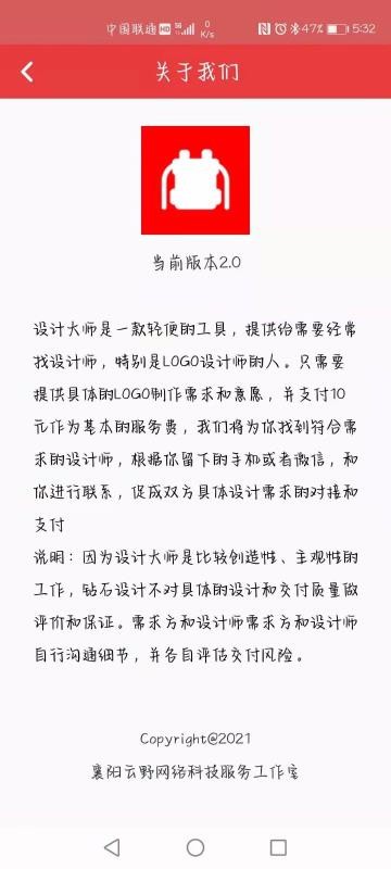 设计大师是一款设计服务撮合平台,在该软件中能找到专业的设计师为自己设计UI、图标等各种产品,只要发布需求就会获得相应的设计师匹配安排服务;这里为用户提供非常简单的设计师获取方式,主要以发布需求的方式向平台提交自己的需求信息,后台的服务人员会根据用户的需求帮助其筛选出合适的设计师资源,平台会将用户留下的联系方式提供给设计师人员,然后就能获得设计师的主动联系服务;这是一款专注于中间方撮合服务的app,有了该软件后就能减少许多直接和设计师沟通的洽谈交接问题,提高合作成交率。