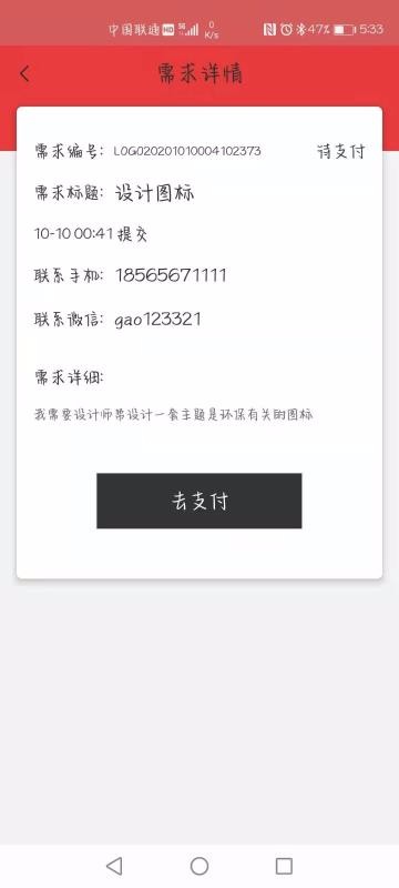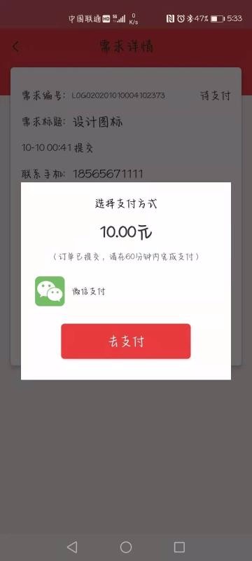 2、快速支付服务费用,在提交需求的时候能通过线上支付方式支付费用;