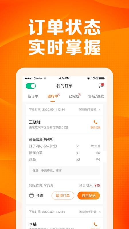3、在订单界面中,用户可查看到店铺的各种订单