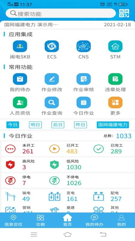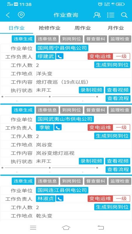 2、展示详细的作业统计内容,可以实时查看运检、基建、营销等作业风险等级的信息;
