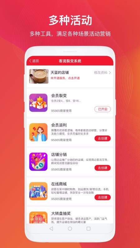 1、汇集了丰富的门店活动和微信活动,轻松助力商家加粉聚人气;