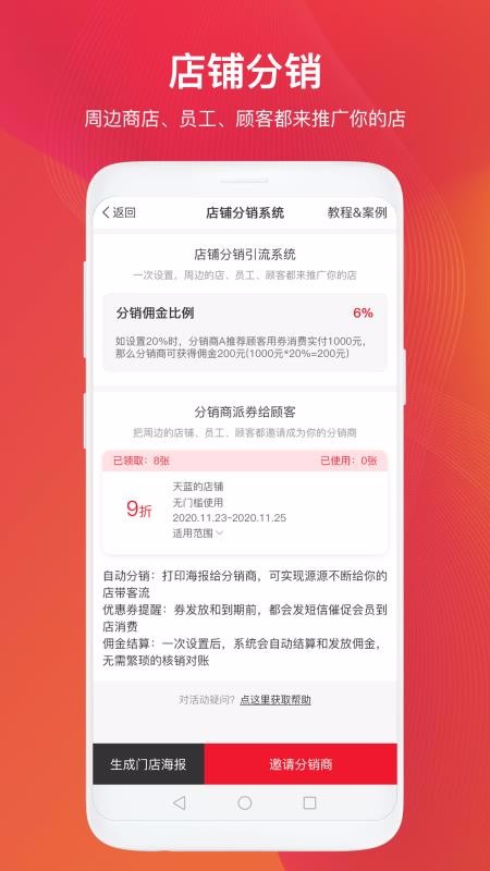 2、拥有专业的店铺分销系统,可以让周边的商店、员工、顾客都来推广你的店;